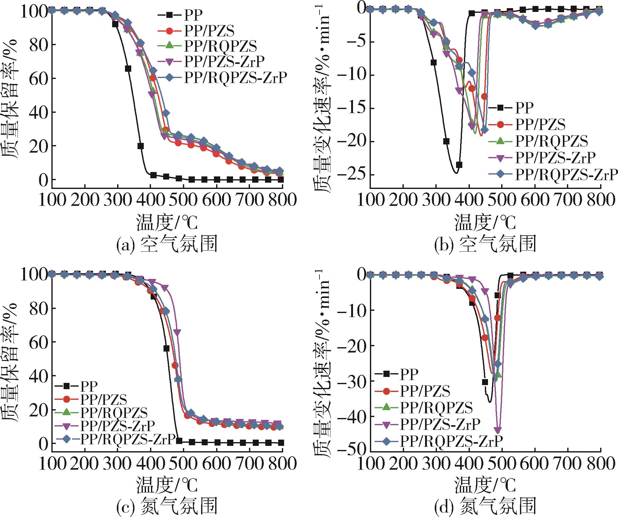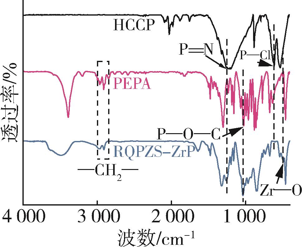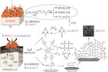 以六氯三聚磷腈(HCCP)、笼状磷酸酯(PEPA)、N⁃烷氧基受阻胺(T152)和磷酸锆纳米片(ZrP)等为原料,制备了ZrP修饰单组分聚磷腈膨胀型阻燃剂(RQPZS⁃ZrP),并将其用于阻燃聚丙烯(PP)。研究了T152、ZrP和RQPZS⁃ZrP的用量及配比对PP/RQPZS⁃ZrP阻燃性能和热稳定性能等的影响,深入探讨并揭示了RQPZS⁃ZrP对PP的阻燃作用机理。结果表明,当RQPZS⁃ZrP的用量为25 %(质量分数,下同)时,PP/RQPZS⁃ZrP的极限氧指数(LOI)提高至30.3 %,并通过UL 94 V⁃0级,其热释放速率峰值、总热释放速率和总烟释放量较PP分别降低了82.3 %、45.3 %和48.0 %;在燃烧过程中,RQPZS⁃ZrP的磷腈环和笼状磷酸酯经酯化、环化和交联等分子内成炭反应,形成致密的膨胀炭层,有效抑制了PP的降解和燃烧;RQPZS⁃ZrP的N⁃烷氧基受阻胺基团发挥了自由基猝灭作用,抑制PP的降解;而ZrP纳米片发挥了催化成炭作用,促进PP交联成炭,形成类石墨结构的致密炭层,同时充当膨胀炭层的支撑骨架,提高炭层的强度和阻隔作用。