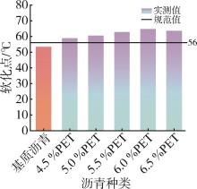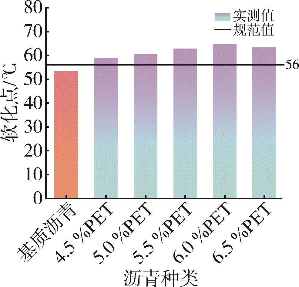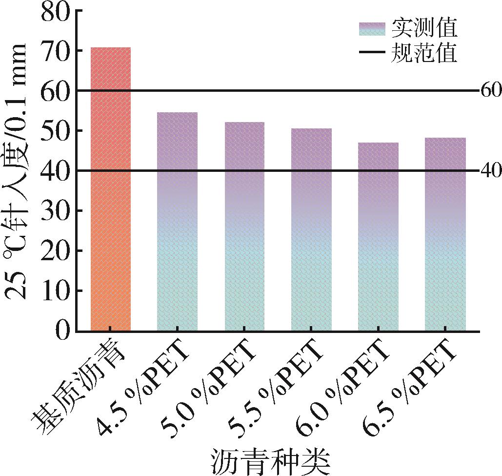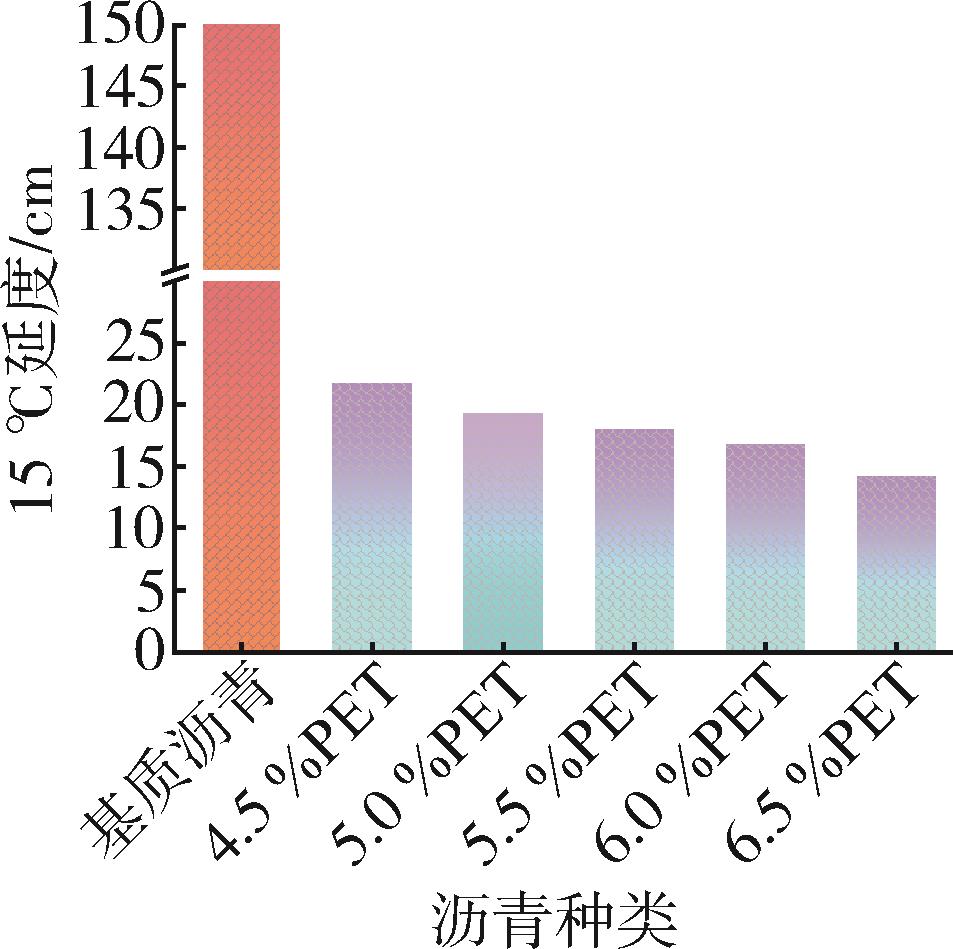 This study investigated the application of modified waste polyethylene terephthalate (PET) pellets as an asphalt modifier for road construction. PET⁃modified asphalt was prepared with varying modifier contents (4.5 %~6.5 % by mass of base asphalt) and systematically evaluated. Comprehensive testing identified 6.0 % PET content as the optimal modifier content, demonstrating significant performance improvements: a 33.3 % reduction in penetration degree, 21.1 % increase in softening point, and decreased ductility compared to base asphalt. Subsequent mixture evaluation through rutting tests, low⁃temperature bending tests, water immersion Marshall tests, and freeze⁃thaw splitting tests revealed enhanced performance characteristics. The modified mixture exhibited 151.1 % greater dynamic stability, along with 5.6 % and 3.0 % improvements in residual stability ratio and freeze⁃thaw splitting strength ratio, respectively. While low⁃temperature crack resistance decreased marginally (5.3 % reduction in flexural tensile strength and 6.7 % in strain), the results indicated that PET modification substantially improved high⁃temperature stability and water resistance of asphalt mixtures. This study validates the technical feasibility of using waste PET in road engineering while providing an effective recycling solution for plastic waste, contributing to sustainable infrastructure development.