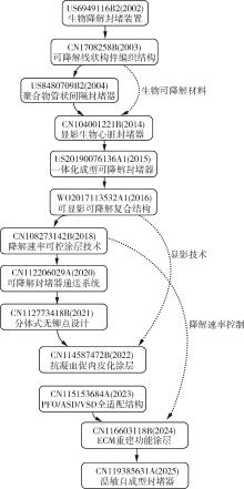 | CN106491167B | 先健科技(深圳)有限公司 | 2015⁃9⁃7 | 可吸收封堵器,采用多时段降解高分子丝或共混聚合物丝编织,通过梯度降解设计避免材料集中降解,降低组织炎症反应风险。 | WO2017041554A1、US20180214159A1、EP3348205B1、EP3348205A1、EP3348205A4、IN201817003390A、US10799245B2 |