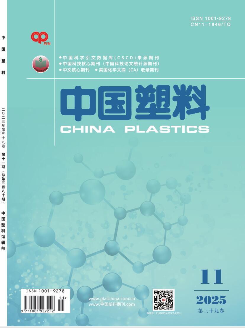 To address the high density and low toughness of conventional wood⁃plastic composites (WPCs), this study employed chemical foaming technology to introduce a microcellular structure into the material. Subsequent crack passivation and other methods were applied to achieve simultaneous enhancement and toughening, thereby facilitating high⁃performance applications of WPCs. Using azodicarbonamide (ADC) and sodium bicarbonate (SBC) as foaming agents, the influence of their pyrolysis behavior on cellular morphology was investigated through thermal stability analysis. Formula optimization was further conducted to examine the effect of gas production rate on the mechanical properties of the composites. The results indicated that, compared to SBC⁃based foam masterbatch, ADC foaming agent compounded with zinc oxide was easier to yield a “fine and dense” microcellular structure. At an optimal dosage of 1 phr, a microporous structure with an average cell size of 71 μm and a cell density of 2.7×10⁴ cells/cm³ was achieved. The corresponding impact strength, tensile strength, and flexural strength of the composite reached 6 kJ/m², 9.7 MPa, and 22.1 MPa, respectively.