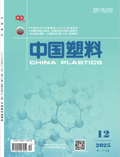 Hexanediol diacrylate (HDDA) was grafted onto poly(butylene succinate) (PBS) using dibenzoyl peroxide (BPO) as an initiator via reactive melt grafting. The successful grafting of HDDA without gelation was confirmed by Fourier⁃transform infrared spectroscopy, ¹H⁃NMR, and gel content analysis. A quantitative model established in TQ Analyst software (correlation coefficient=0.989 6) determined a grafting rate of 0.83 % under optimal conditions (100 ppm PBS, 3 phr HDDA, 0.3 phr BPO). The introduction of long⁃branched chains reduced the crystallinity of PBS, as characterized by differential scanning calorimetry and wide⁃angle X⁃ray diffraction, while also providing physical entanglement points that promoted nucleation. The grafting process significantly increased the melt strength, evidenced by a rise in torque from 1.73 N·m to 8.17 N·m. Gel permeation chromatography revealed an increase in molecular weight, resulting in a number⁃average molecular weight of 44 825 g/mol and a weight⁃average molecular weight of 184,921 g/mol. Consequently, the modified PBS exhibited improved mechanical properties, demonstrating that grafting with optimal concentrations of HDDA and BPO is an effective strategy for enhancing the performance of PBS.