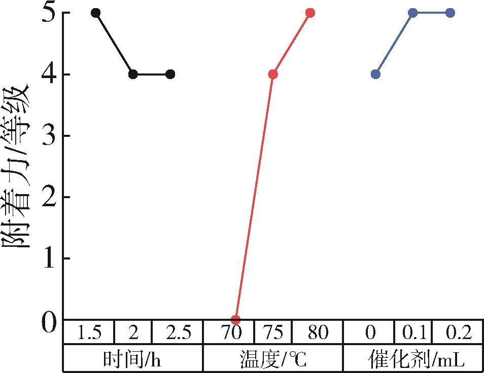 A soybean oil⁃based polyurethane prepolymer was synthesized by first reacting epoxidized soybean oil with methanol catalyzed by tetrafluoroboric acid, followed by reaction with 2,4⁃toluene diisocyanate. The chemical structure of the prepolymer was confirmed by Fourier⁃transform infrared spectroscopy. Coatings were prepared by applying the prepolymer onto tinplate substrates and curing at room temperature for seven days. The effects of the —NCO to —OH molar ratio (R value) and reaction conditions on the coating properties, including contact angle, physical properties, and corrosion resistance, were investigated. Results indicated that the coating prepared with an R value of 2∶1, a reaction temperature of 70~75 ℃, and a reaction time of 2 h exhibited the optimal comprehensive performance.