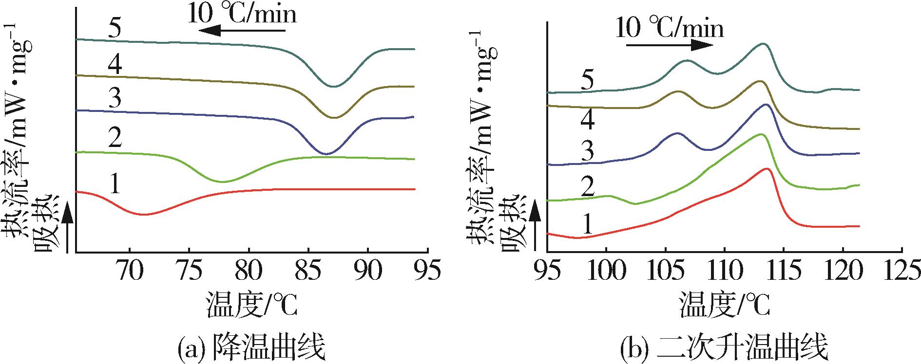 | 样品 | Tc/℃ | Tm⁃i/℃ | Tm⁃ii/℃ | ΔHm/J·g-1 | ΔHc/J·g-1 | Xc/% |